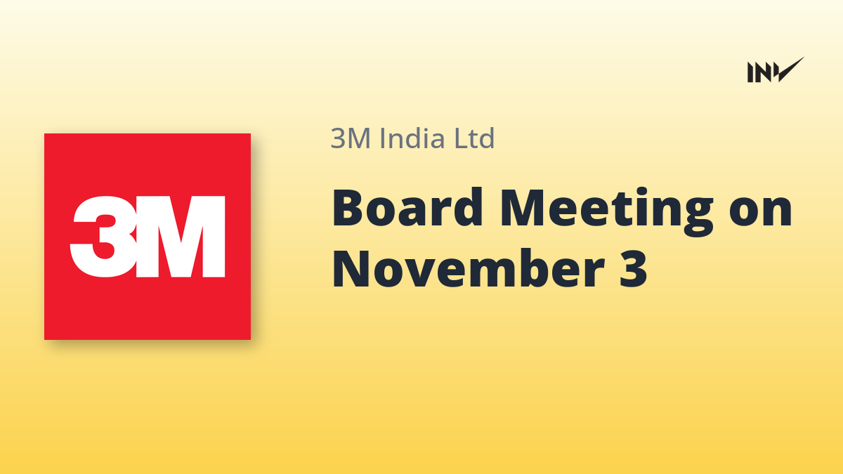 A meeting of the Board of Directors at 3M India is scheduled for November 3, 2025 (Monday).