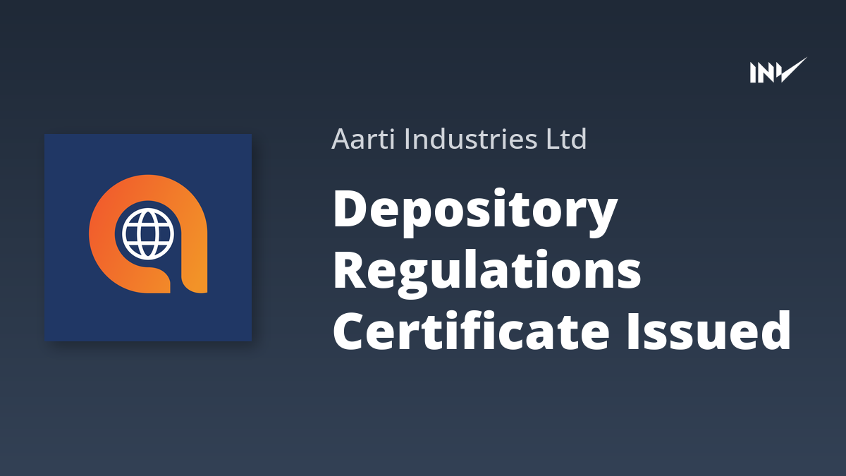 Aarti Industries has received a certificate under Regulation 74(5) of the SEBI (Depositories and Participants) Regulations, 2018, for the quarter ended September 30, 2025. The certificate was received from MUFG Intime India Pvt. Ltd., the Registrar and Share Transfer Agent. This confirms compliance with depository regulations.