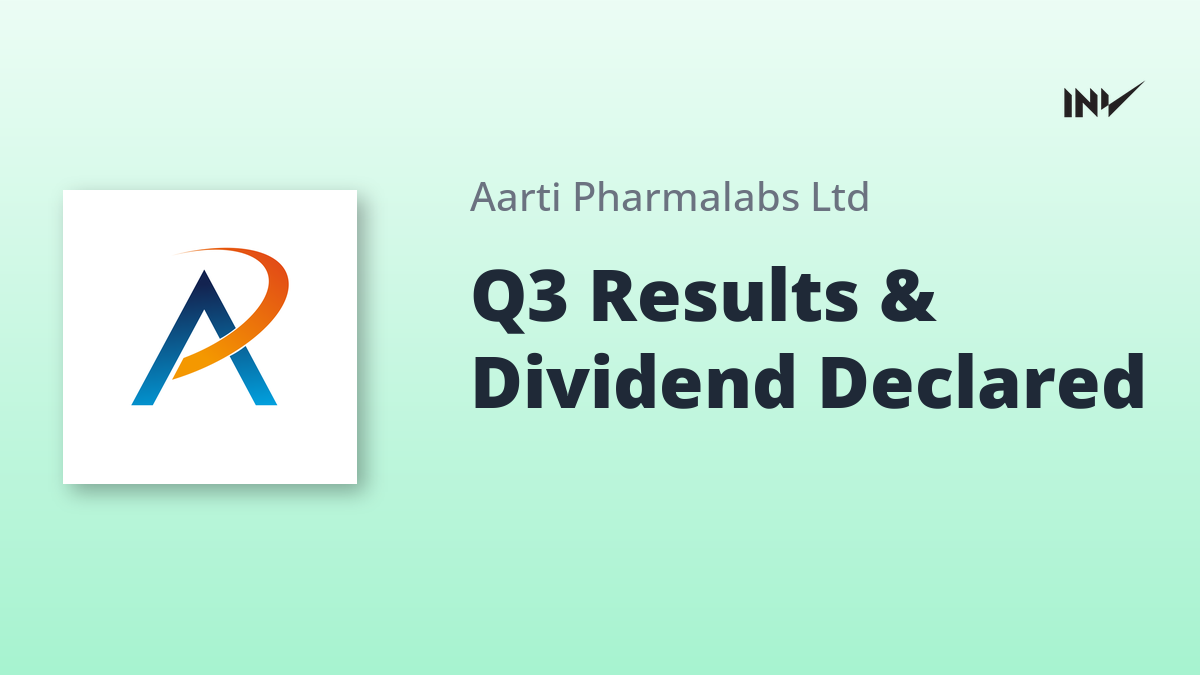The Board of Directors of Aarti Pharmalabs approved the Unaudited Financial Results (Standalone and Consolidated) for the quarter and nine months ended December 31, 2025. The Board also declared an Interim Dividend of ₹1.50 (30%) per Equity Share of ₹5/- each for FY 2025-26, with February 16, 2026 set as the Record Date. Standalone Net Profit for Q3 FY26 stood at ₹4,384.46 lakhs.