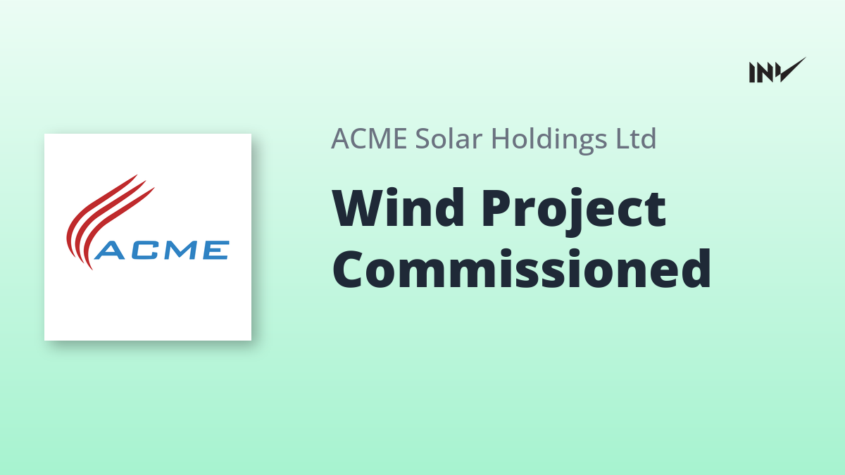 ACME Solar Holdings, via its subsidiary ACME Eco Clean Energy Pvt Ltd, has announced the commissioning of an additional 8 MW of its 100 MW wind power project. The project is located in Surendranagar, Gujarat. This follows the prior commissioning of 44 MW in previous phases.