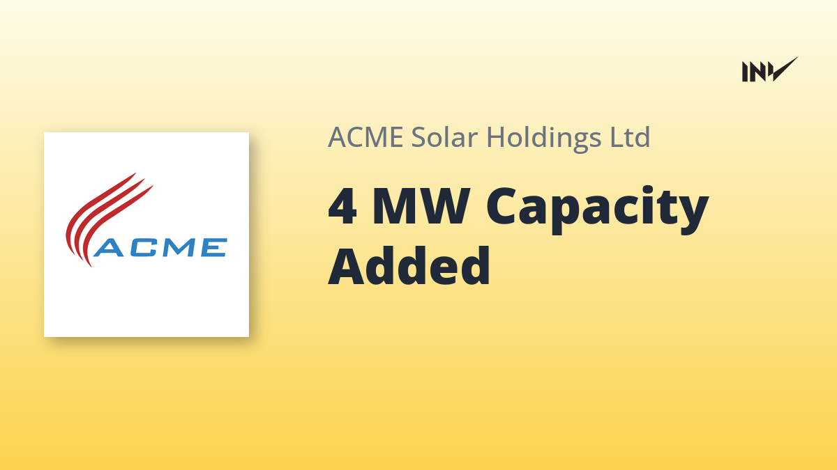 With this commissioning, ACME Eco Clean Energy Private Limited has reached a total commissioned capacity of 56 MW out of the total 100 MW project capacity.