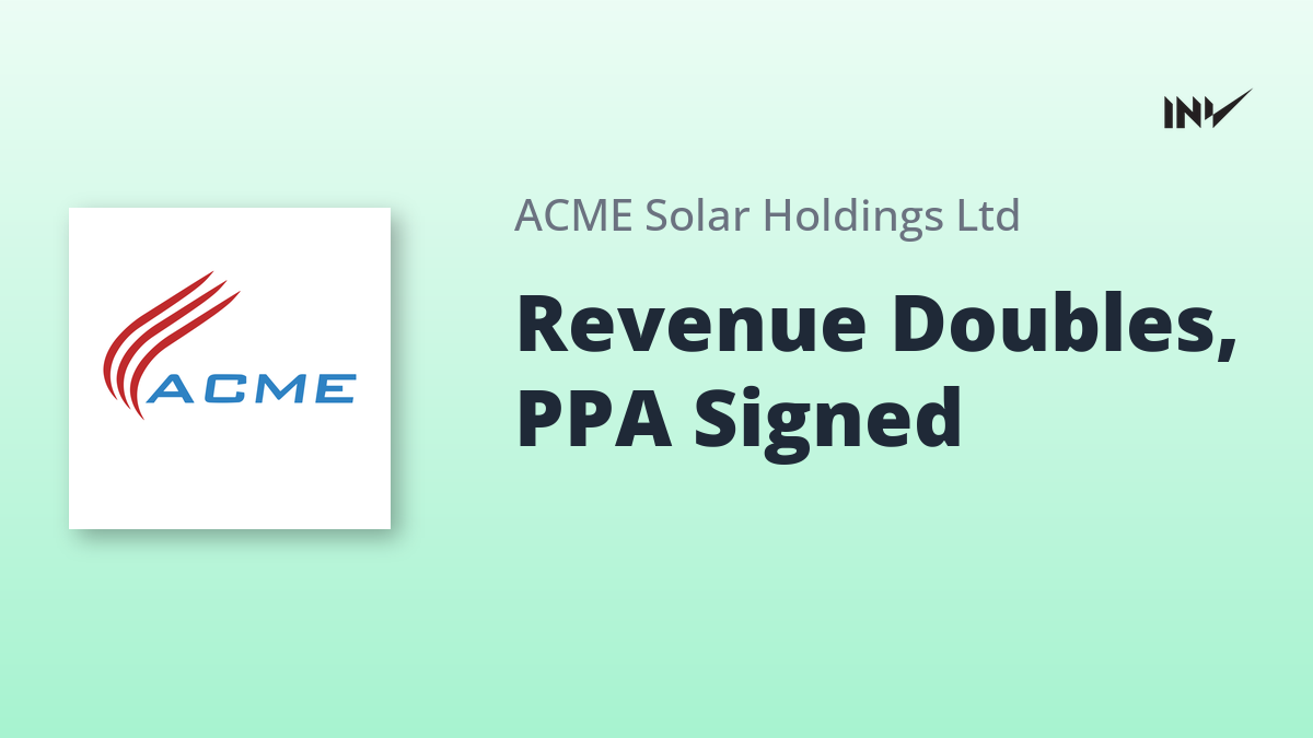 ACME Solar announced a doubling of revenue, with INR 601 Cr in Q2 FY26. The company commissioned 28 MW of a wind project and won contracts for 720 MW/ 2,460 MWh of capacity. Furthermore, the company signed its first PPA with a private entity, Tata Power, for 50 MW/ 220 MWh. ACME Solar’s credit rating was upgraded to AA-/ Stable.