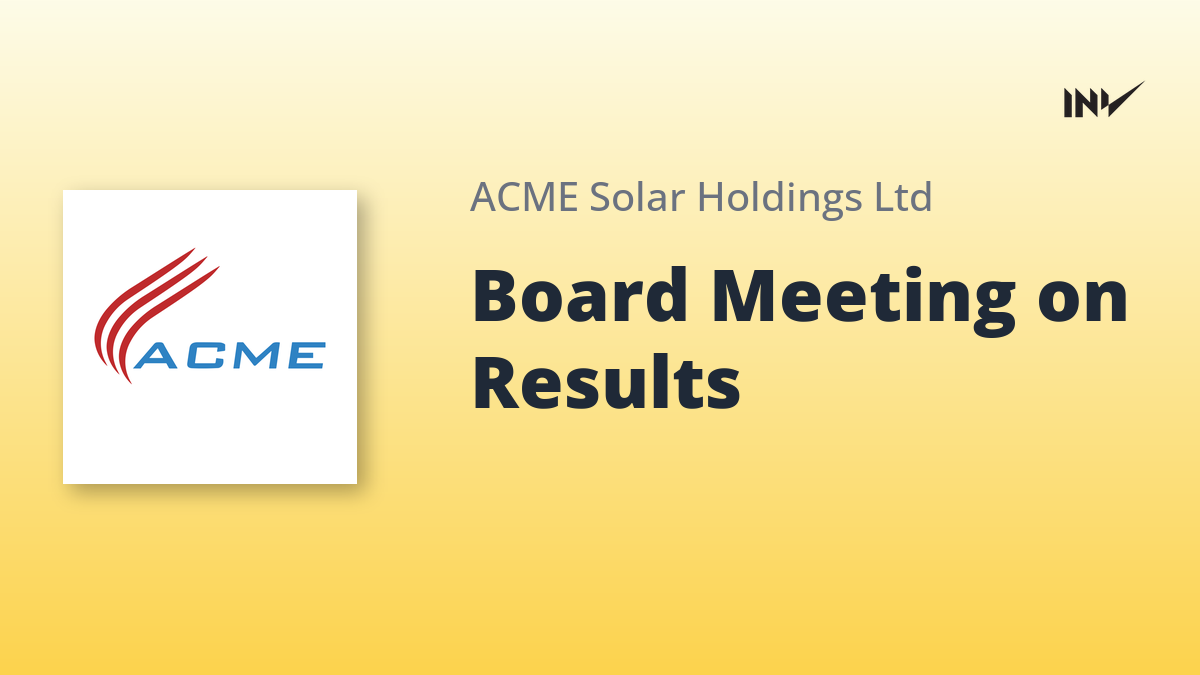 A meeting of the Board of Directors of ACME Solar Holdings Limited is scheduled for November 03, 2025. The primary agenda is to consider and approve the unaudited financial results.
