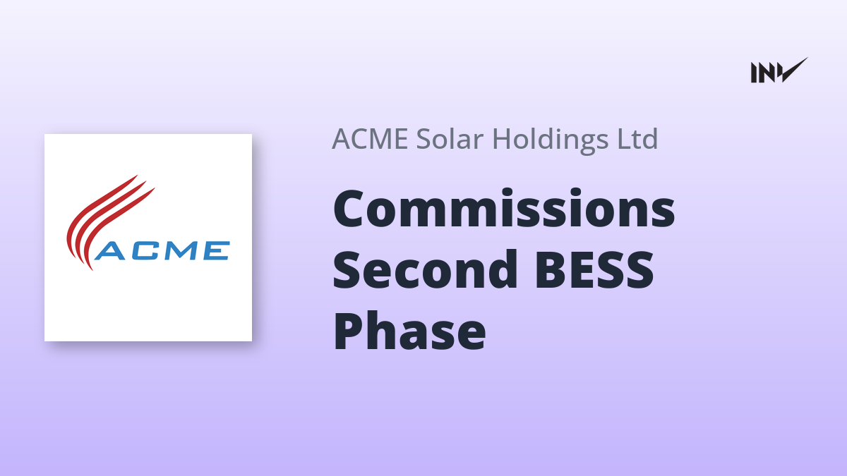 ACME Solar Holdings Limited has announced the successful commissioning of the second phase of its major Battery Energy Storage System (BESS) project in Rajasthan. This phase adds 33.335 MW/160.51 MWh, bringing the total commissioned capacity to 66.67 MW / 320.99 MWh against the total planned 300 MW/1409.34 MWh. The Commercial Operation Date (COD) for this second tranche is set for March 14, 2026.