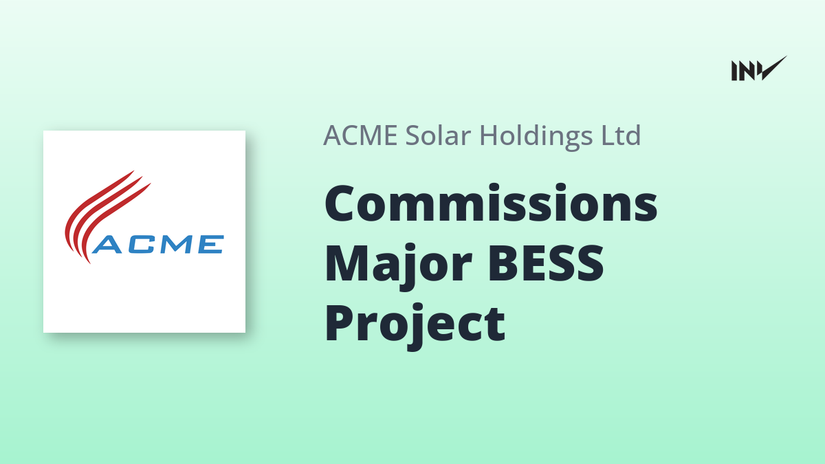 On March 13, 2026, ACME Solar Holdings Ltd announced the commissioning of a major Battery Energy Storage System (BESS) phase in Rajasthan. Through its subsidiaries, the company has completed 142.67 MW / 481.49 MWh of BESS capacity.