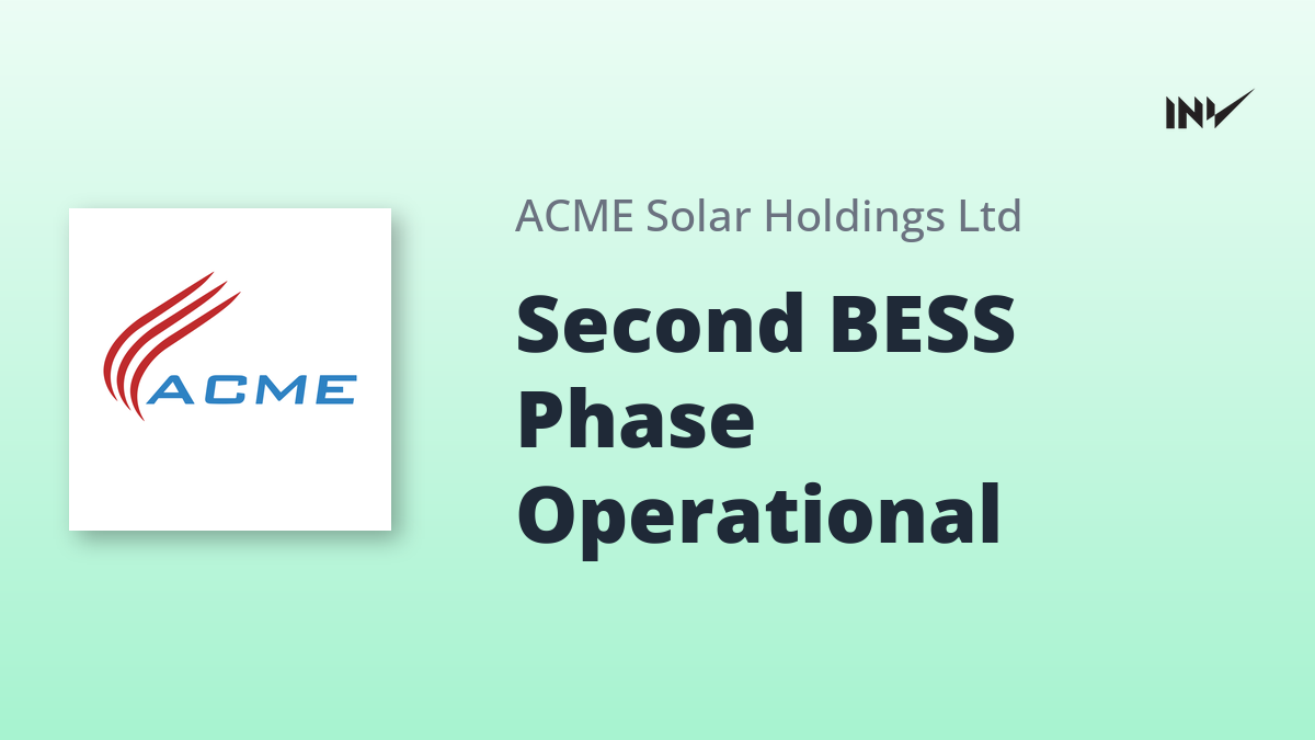 ACME Solar Holdings Limited (“ASHL”) confirms the successful commissioning of the second phase of its Battery Energy Storage System (BESS) project. This development was executed through its wholly owned subsidiary, ACME Surya Power Private Limited.