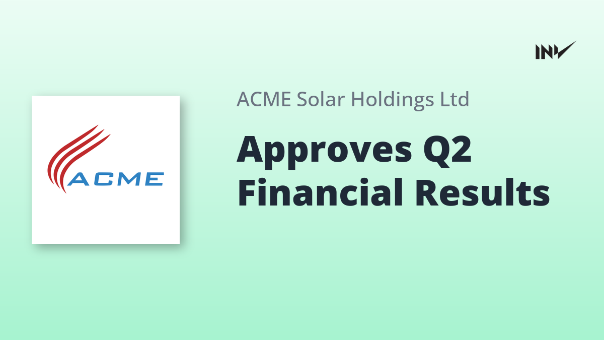 The Board of Directors of ACME Solar Holdings Limited has approved the unaudited consolidated and standalone financial results for Q2 FY26. The company’s financial results show a total consolidated income of ₹11,853.56 million and a standalone total income of ₹8,294.58 million. These results reflect the company’s performance for the quarter ended September 30, 2025.