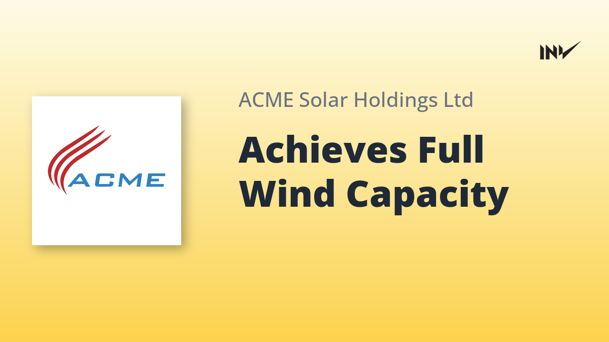 ACME Solar Holdings Subsidiary Achieves Full 100 MW Wind Power Capacity