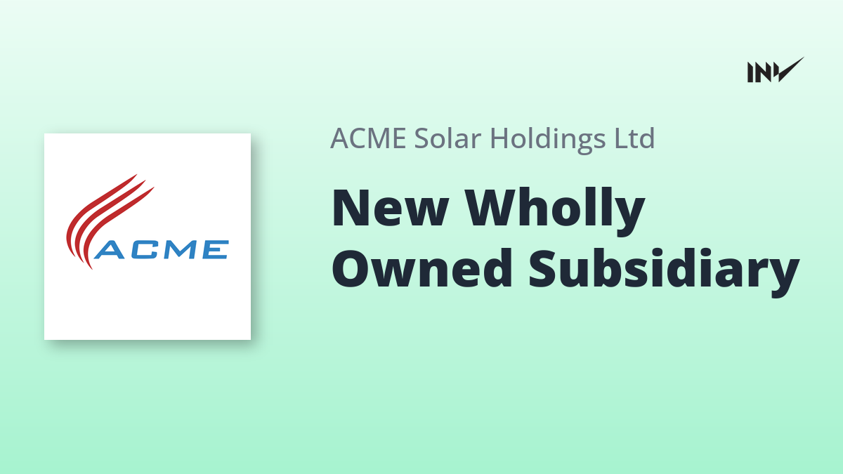 ACME Solar Holdings Limited has announced the incorporation of a new wholly owned subsidiary, ACME Greentech Seventeen Private Limited. This new entity aims to further the company’s objectives in the power generation sector, focusing particularly on renewable energy. The incorporation took place on December 23, 2025, marking a significant step in ACME Solar’s growth strategy.
