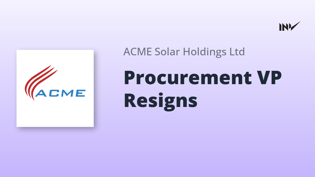 ACME Solar Holdings Limited announced the resignation of Mr. Sarthak Sengupta, Vice President-Procurement, effective from the close of business hours on November 14, 2025. The resignation is due to personal reasons. The company acknowledged his contributions and wished him well in his future endeavors.