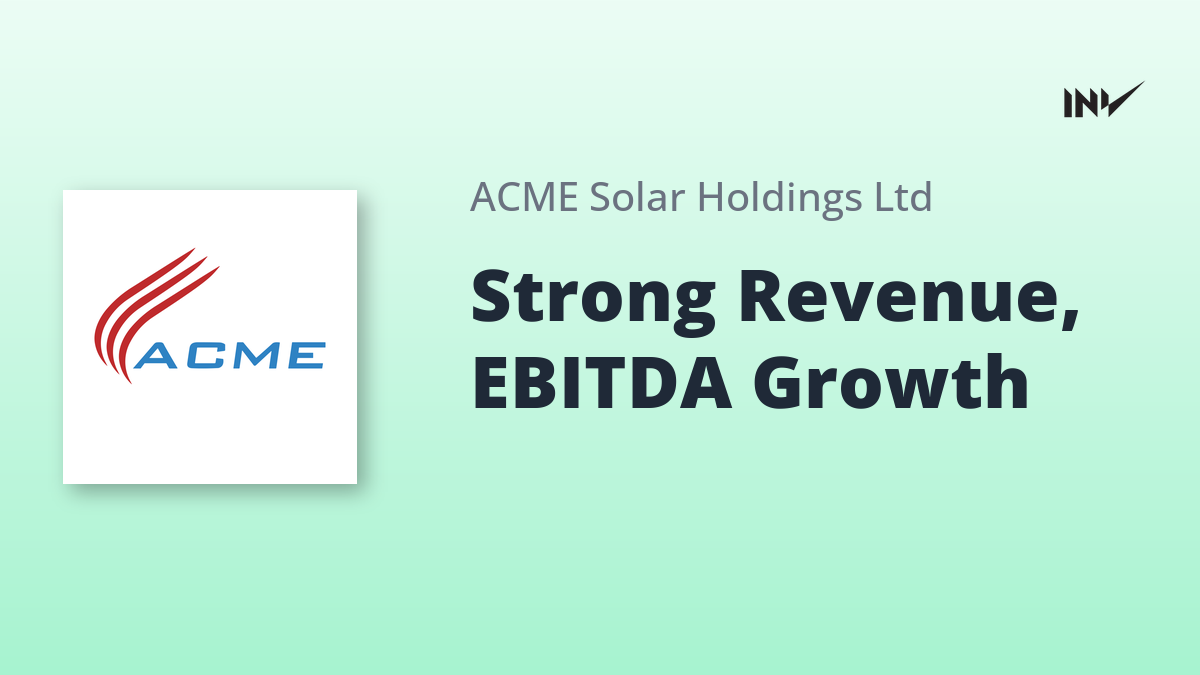 ACME Solar reported a strong Q3 FY26 with revenue of INR 617 Cr, a 54% year-over-year increase, and EBITDA of INR 564 Cr, up 57% year-over-year. Key highlights include the partial commissioning of a 72 MW wind project, bringing the YTD commissioned capacity to 422 MW, and PPAs signed for 450 MW projects, increasing the cumulative YTD PPA signed capacity to 1,050 MW.