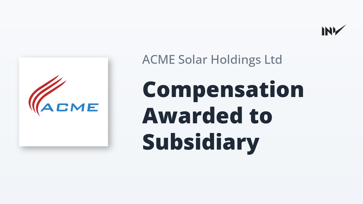 ACME Solar Holdings Limited announced on November 17, 2025, that its subsidiary, ACME Aklera Power Technology Private Limited, has secured an award of approximately INR 47.40 crore. The compensation was awarded by the Rajasthan Electricity Regulatory Commission (RERC) due to changes in law impacting project costs.