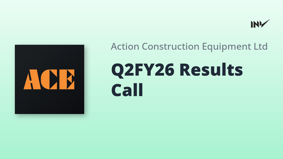 Action Construction Equipment (ACE) has announced a conference call to discuss its Q2FY26 financial results. The call is scheduled for Friday, November 7, 2025, at 04:00 PM (IST). This follows the release of the company’s financial results on November 6, 2025.