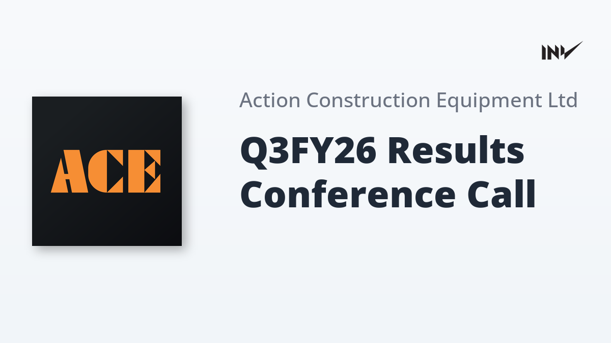 Action Construction Equipment Limited (ACE) has announced a conference call to discuss its financial results for the third quarter of fiscal year 2026 (Q3FY26). The conference call will be held on Wednesday, February 4, 2026, at 04:00 PM (IST).