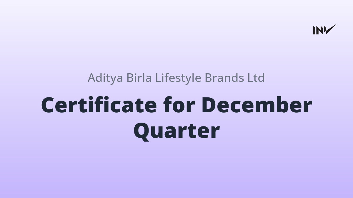 Aditya Birla Lifestyle Brands has received confirmation regarding the processing of securities for the quarter ending December 31, 2025. The certificate was issued by MUFG Intime India Private Limited, the Registrar to an Issue and Share Transfer Agent.