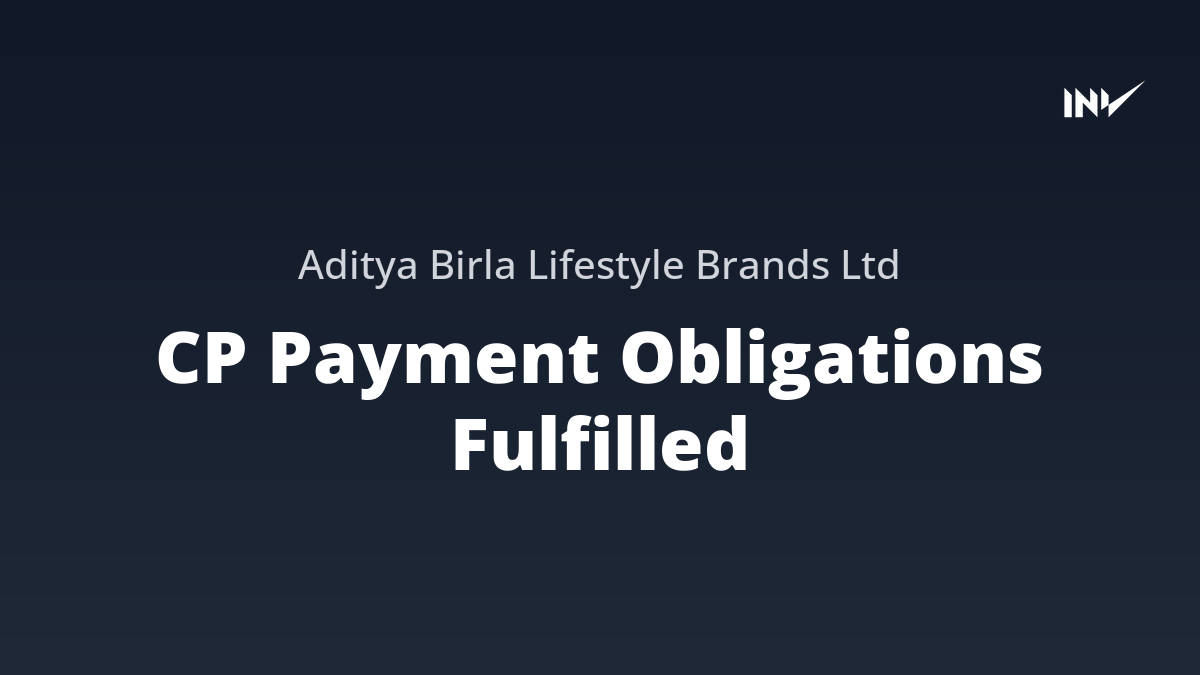 Aditya Birla Lifestyle Brands has announced the successful fulfillment of its payment obligations concerning the Commercial Paper (CP) issued earlier. The CP, initially issued on September 15, 2025, has now reached its maturity and redemption phase.