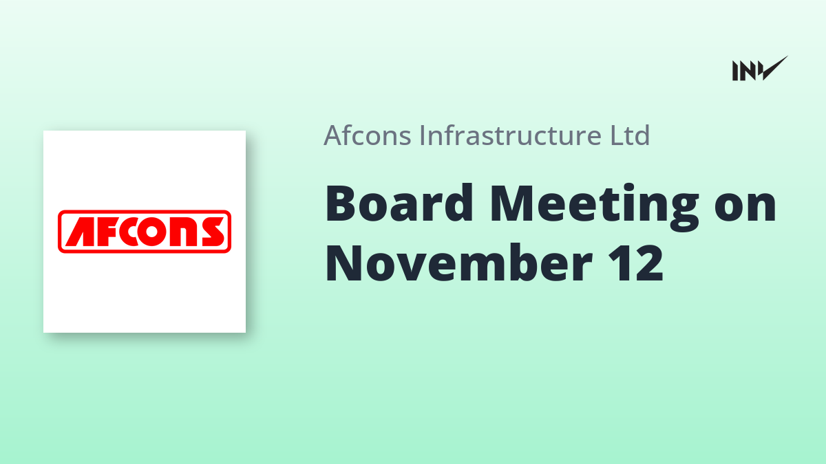 A meeting of the Board of Directors of Afcons Infrastructure Limited is scheduled for November 12, 2025. The primary agenda is to consider and approve the Unaudited Standalone and Consolidated Financial Results for the quarter and half year ended September 30, 2025.