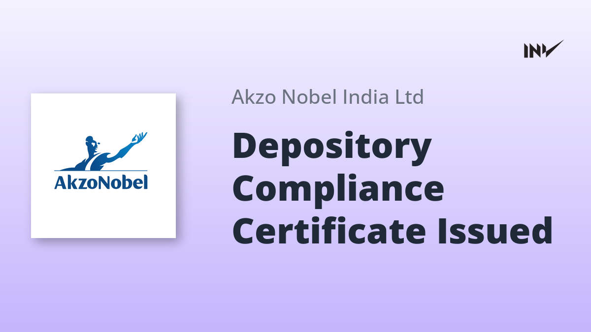 Akzo Nobel India has obtained a certificate confirming adherence to regulatory standards concerning depositories and participants. The certificate, dated October 8, 2025, was issued by C. B. Management Services Pvt. Ltd., the company’s Registrar and Transfer Agent (RTA).