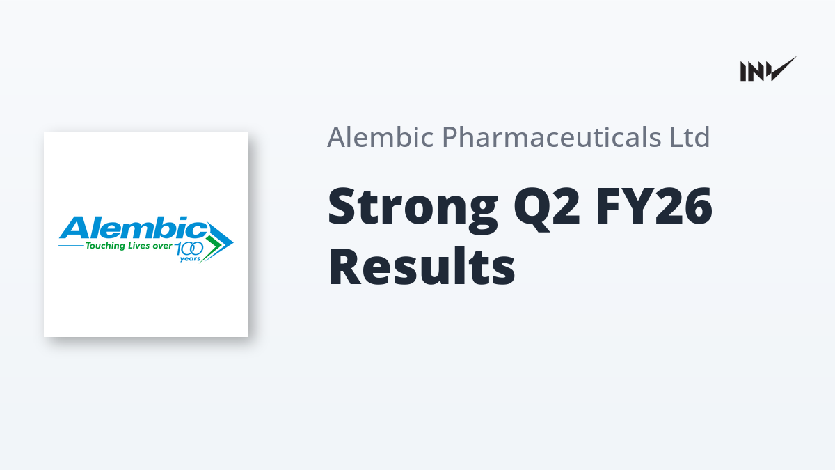 Alembic Pharmaceuticals Ltd. announced a 16% increase in revenue, reaching ₹1,910 Cr, and a 20% growth in Profit After Tax (PAT) for Q2 FY26. EBITDA increased by 26% to ₹325 Cr with a margin of 17%. The company’s performance reflects strong momentum in core businesses and disciplined execution, supported by a 10% revenue investment in R&D.