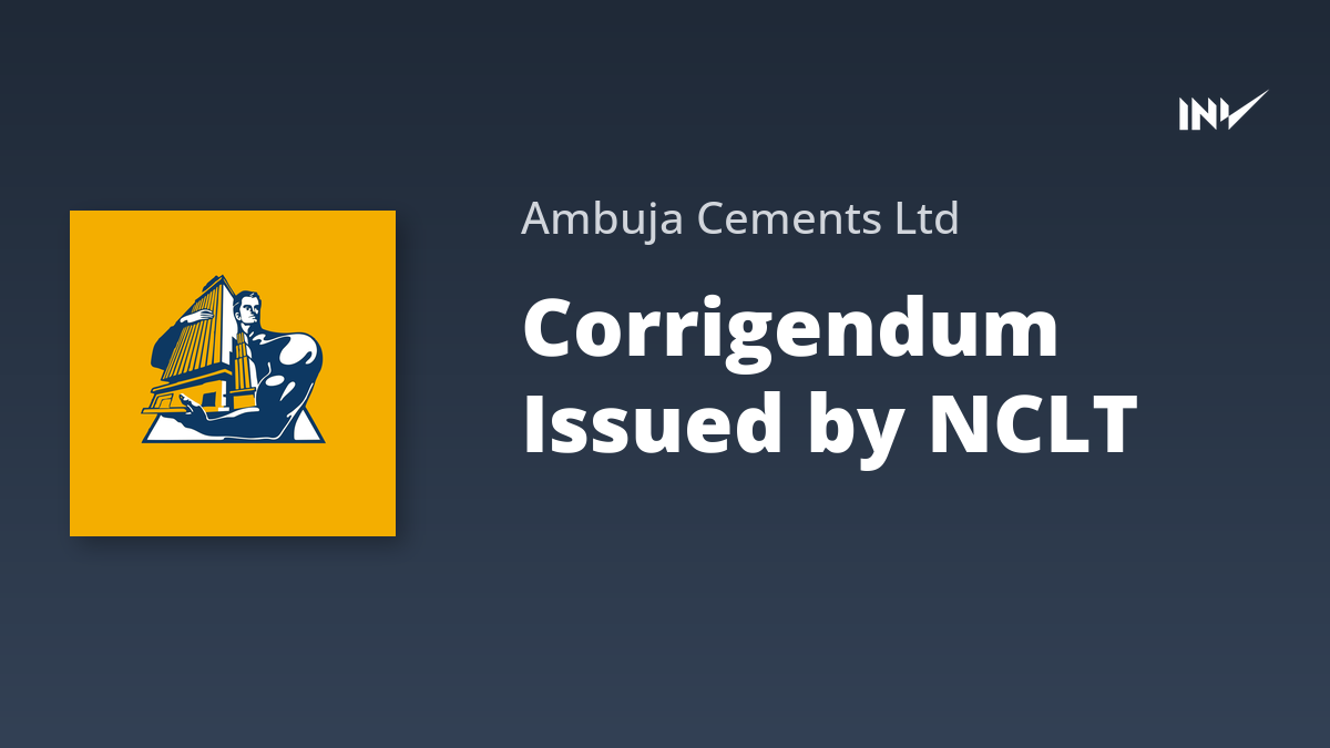 Ambuja Cements has informed stakeholders about a Corrigendum issued by the National Company Law Tribunal (NCLT) concerning the Scheme of Arrangement involving Sanghi Industries Limited.