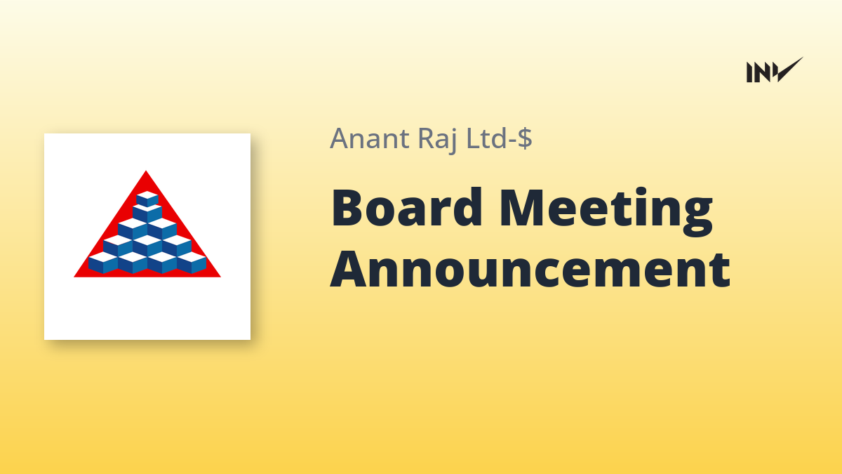Anant Raj Limited will hold a meeting of its Board of Directors on Saturday, November 8, 2025. The meeting will take place at Anant Raj Tech Park, Panchkula.