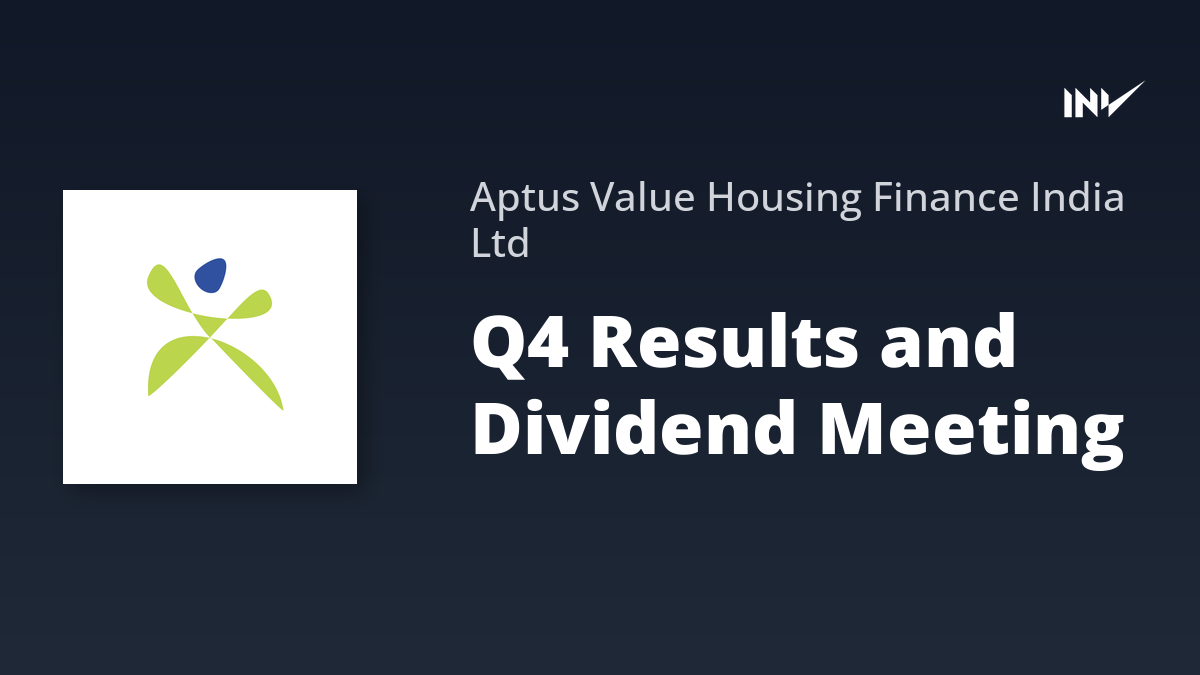 Aptus Value Housing Finance has scheduled a board meeting for May 06, 2026, to approve the audited financial results for the fourth quarter and the fiscal year ended March 31, 2026. The board will also consider declaring an interim dividend for the 2025-26 financial year and discuss a proposal to raise funds through the issuance of debt securities via private placement.