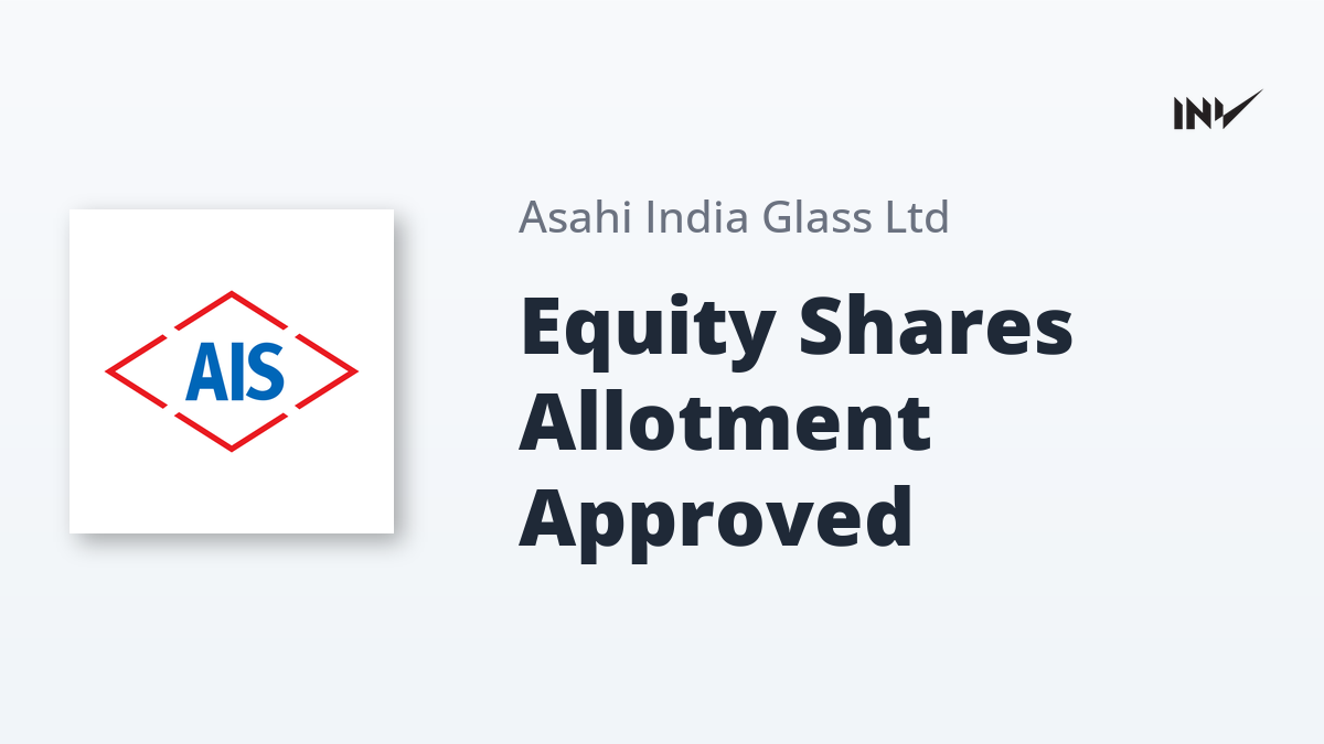 Following the allotment, the paid-up equity share capital of Asahi India Glass Limited increased from ₹24,30,89,931 to ₹25,49,27,192, comprising 25,49,27,192 fully paid Equity shares of face value of ₹1 each.