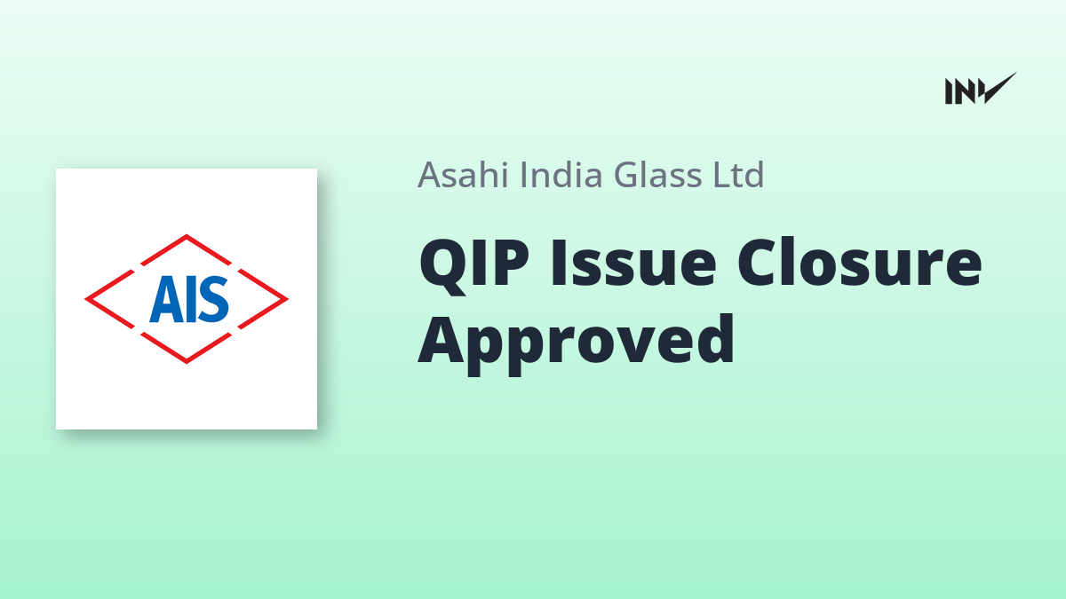 Asahi India Glass Limited has announced the closure of its Qualified Institutions Placement (QIP) issue. The LTP Committee approved the closure on September 18, 2025, with an issue price of ₹844.79 per equity share. A total of 1,18,37,261 equity shares were allocated to eligible qualified institutional buyers. The committee also approved the placement document.