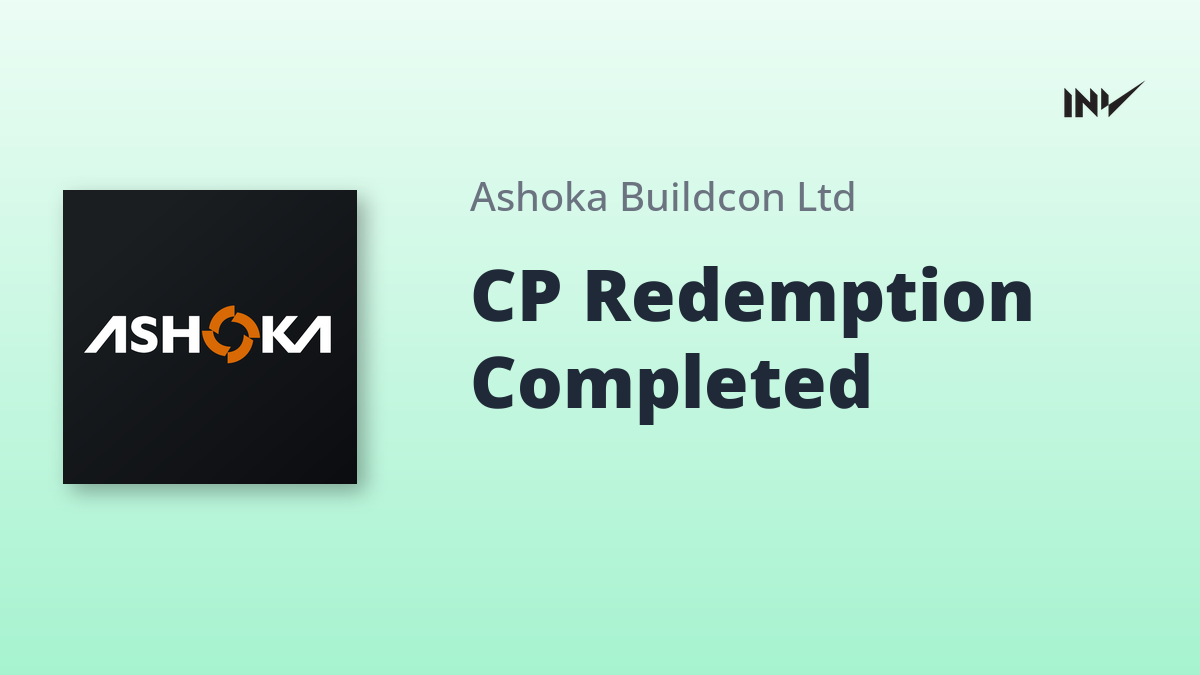 Ashoka Buildcon Limited confirmed the full redemption of its Commercial Papers (CPs) amounting to ₹50 Crore on the scheduled due date, March 23, 2026. The payment, which included the principal and accrued interest, met all regulatory requirements. The interest paid amounted to Rs. 48.66 Lakh, reflecting the difference between the issue price and the face value of the discounted instruments.