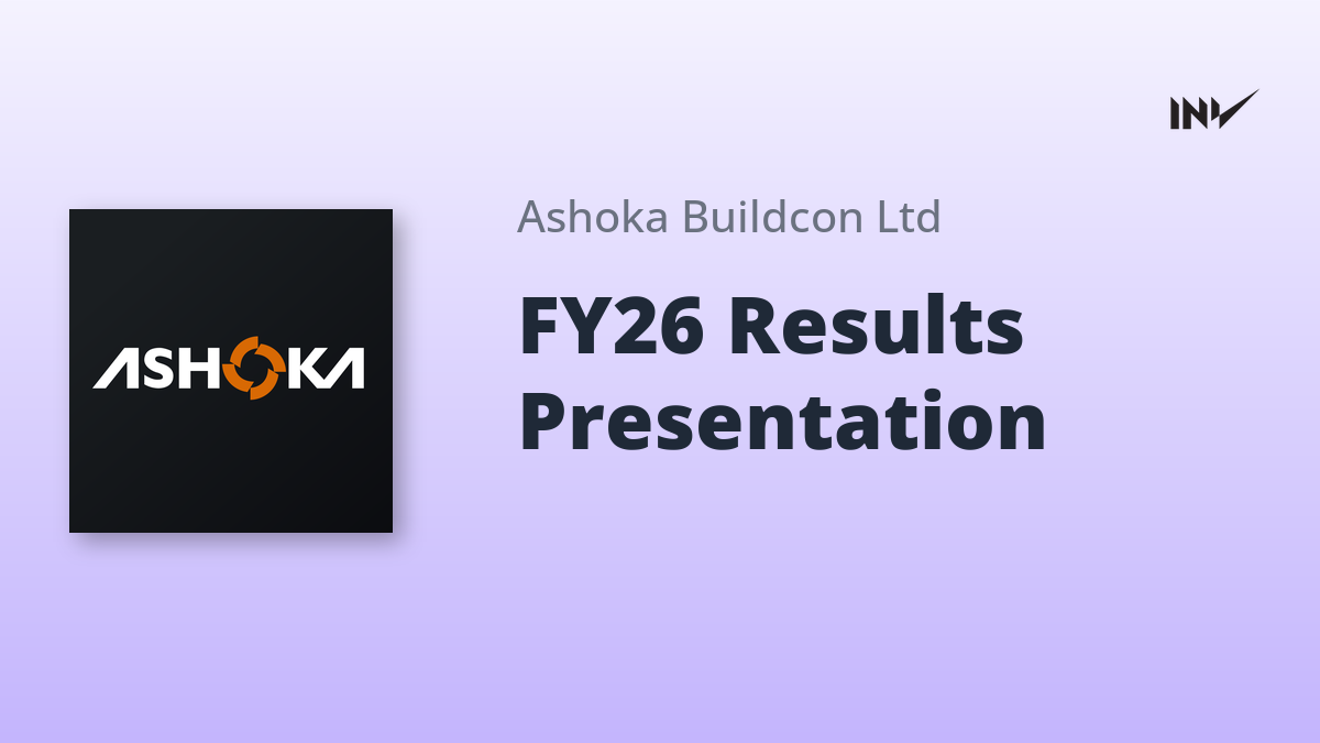 Ashoka Buildcon released its Q3 & 9M FY26 standalone financial performance. Total revenue stood at ₹1,492 Crs for Q3 and ₹4,134 Crs for 9M. EBITDA was ₹157 Crs in Q3 and ₹468 Crs for 9M. Profit before Tax reached ₹50 Crs in Q3 and ₹150 Crs for the nine-month period. The company also reported key updates including stake sales and project acquisitions.