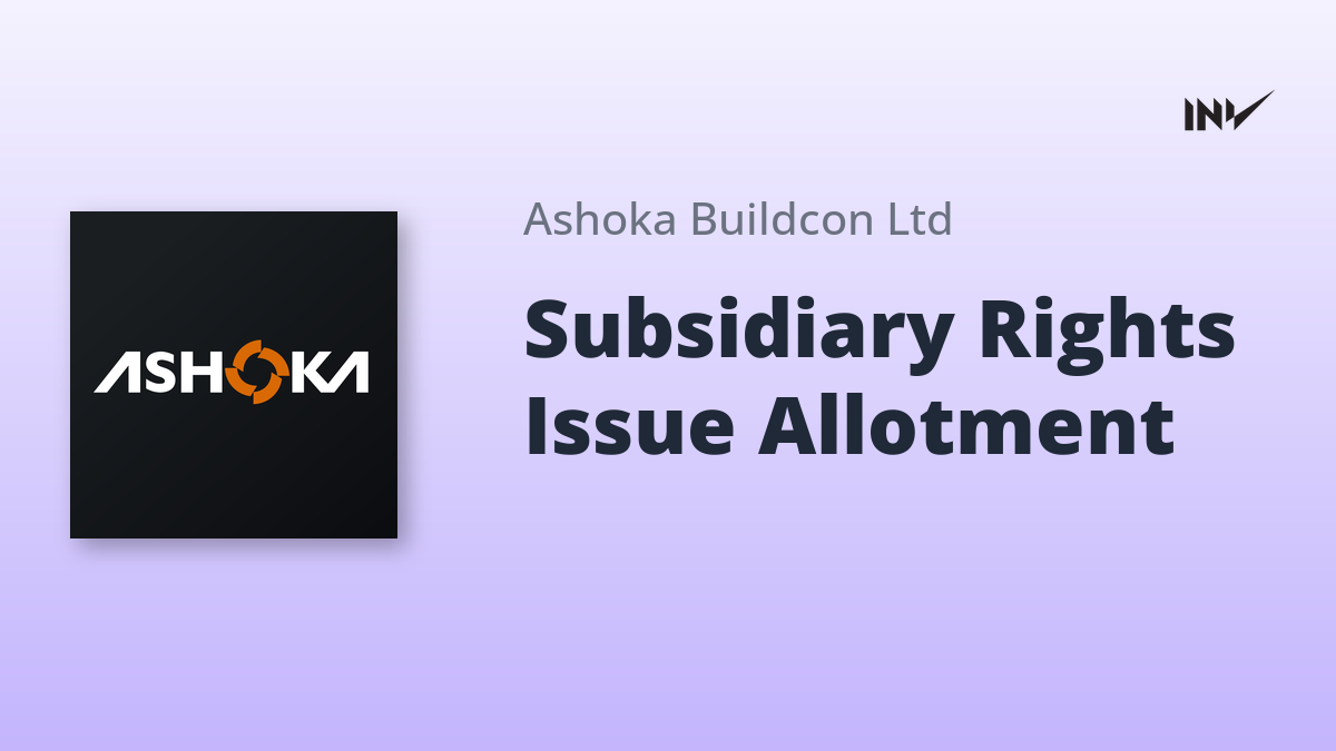 Ashoka Buildcon Limited has completed the allotment of additional equity shares in its wholly owned subsidiary, Viva Infrastructure Limited (VIL). The allotment, finalized on March 25, 2026, involved 40,02,250 equity shares of ₹10/- each, aggregating to a total consideration of ₹4,00,22,500/- (Indian Rupees Four Crore Twenty-Two Thousand Five Hundred only).