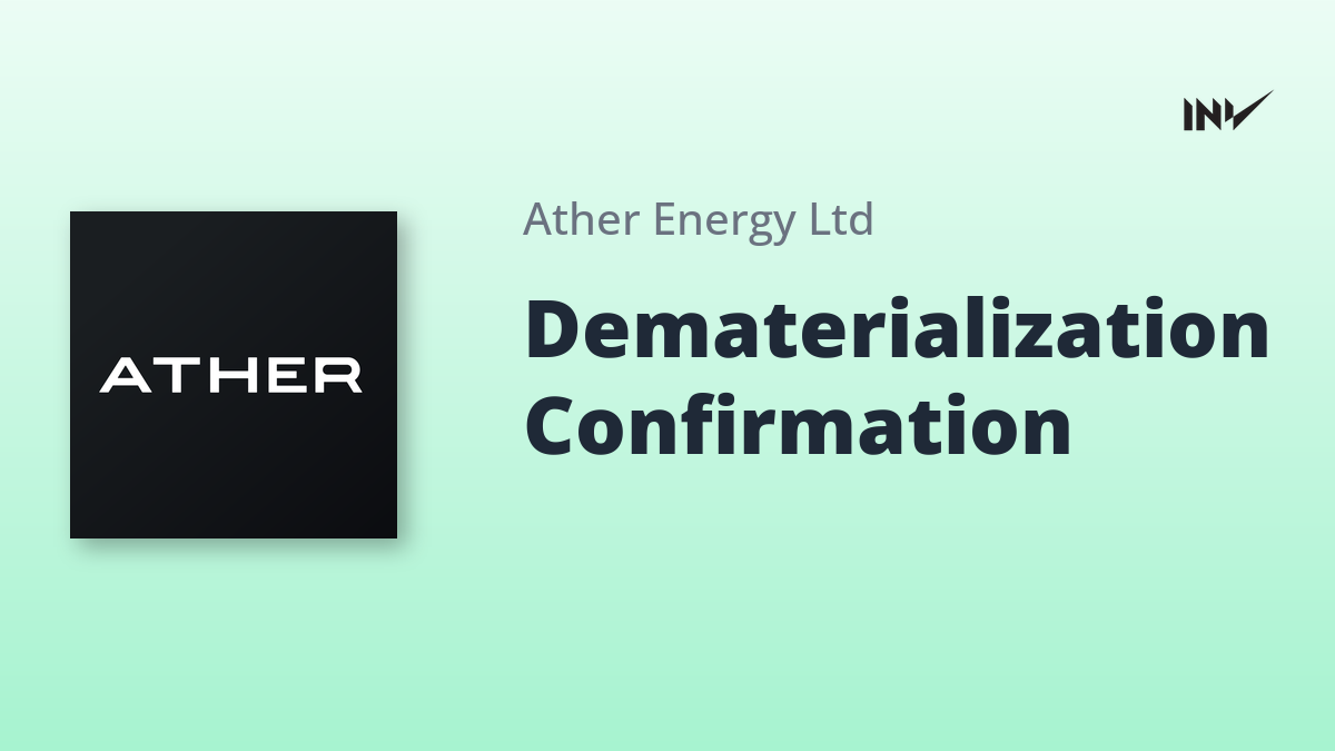 Ather Energy confirms that all company securities are held in dematerialized form for the quarter ended September 30, 2025. As a result, no physical security certificates were received from depository participants during this period, according to the registrar and transfer agent, MUFG Intime India Private Limited. This confirms compliance with regulatory requirements regarding dematerialization.