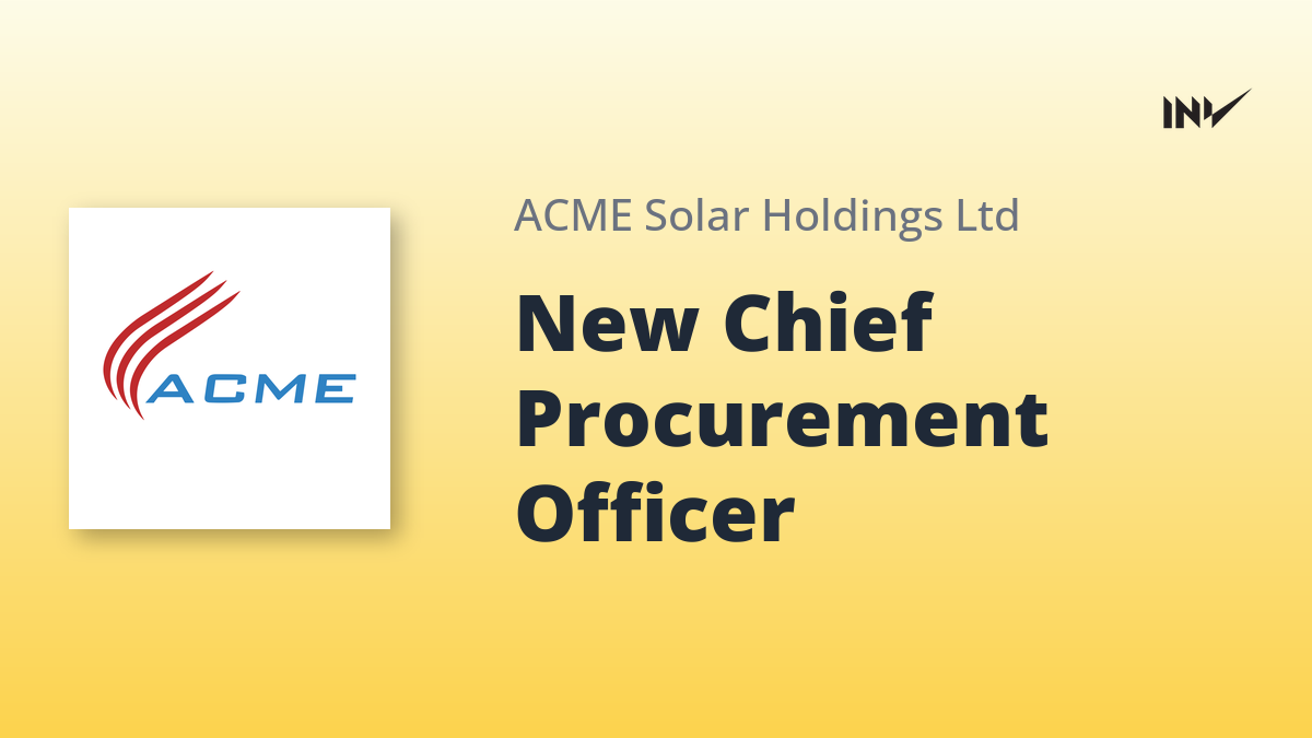 Company Update1 Min Read InvestyWise NewsonDecember 17, 2025 ACME Solar Ayalur Kumar Appointed Chief Procurement Officer ACME Solar Holdings Ltd has appointed Ayalur S Kumar as its new Chief Procurement Officer and Head of Supply Chain. This strategic move aims…