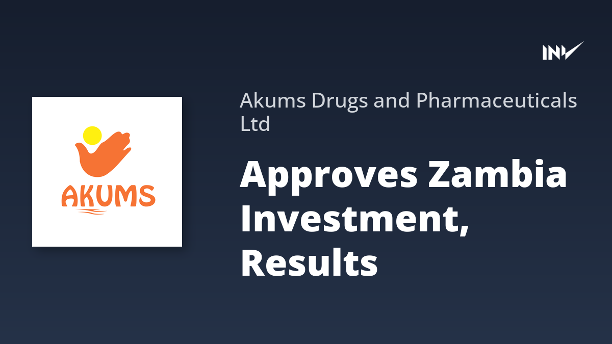 Board Meeting2 Min Read InvestyWise NewsonNovember 13, 2025 Akums Drugs Board Approves Investment in Zambian Healthcare Subsidiary, Financial Results Akums Drugs & Pharmaceuticals Ltd. has approved a USD 24 million investment in its Zambian subsidiary, Akums Healthcare (Zambia) Private…