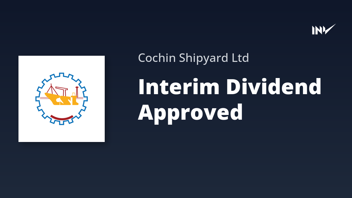 Board Meeting1 Min Read InvestyWise NewsonNovember 12, 2025 Cochin Shipyard Board Approves Interim Dividend of ₹4 Per Share Cochin Shipyard’s Board of Directors has approved an interim dividend of ₹4 per equity share of face value ₹5 each for the financial…