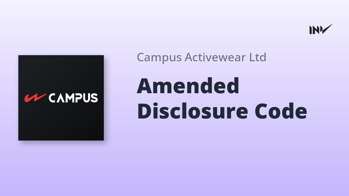 Company Update1 Min Read InvestyWise NewsonNovember 12, 2025 Campus Activewear Ltd Amendment to Code of Fair Disclosure Campus Activewear has amended its Code of Practices and Procedures for Fair Disclosure of Unpublished Price Sensitive Information. The updated…