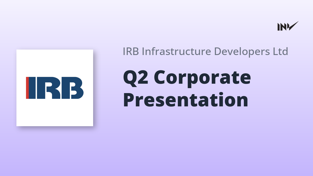 Company Update1 Min Read InvestyWise NewsonNovember 12, 2025 IRB Infrastructure Corporate Presentation for Quarter Ended September 30, 2025 IRB Infrastructure Developers Limited has announced the uploading of its corporate presentation for the quarter ended September 30, 2025, on…