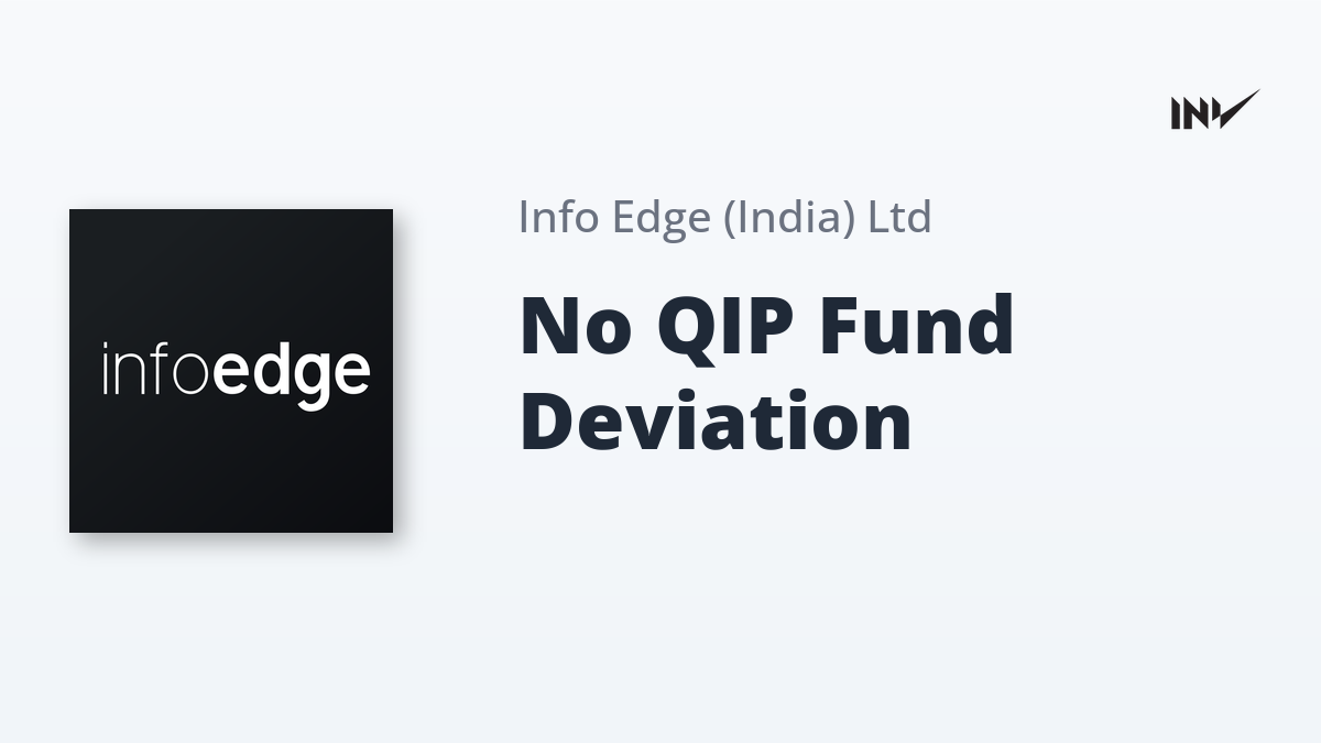 Company Update1 Min Read InvestyWise NewsonNovember 12, 2025 Info Edge No Deviation in Funds from Qualified Institutional Placement (QIP) Info Edge (India) Limited has confirmed that there was no deviation or variation in the utilization of funds raised through its Qualified…