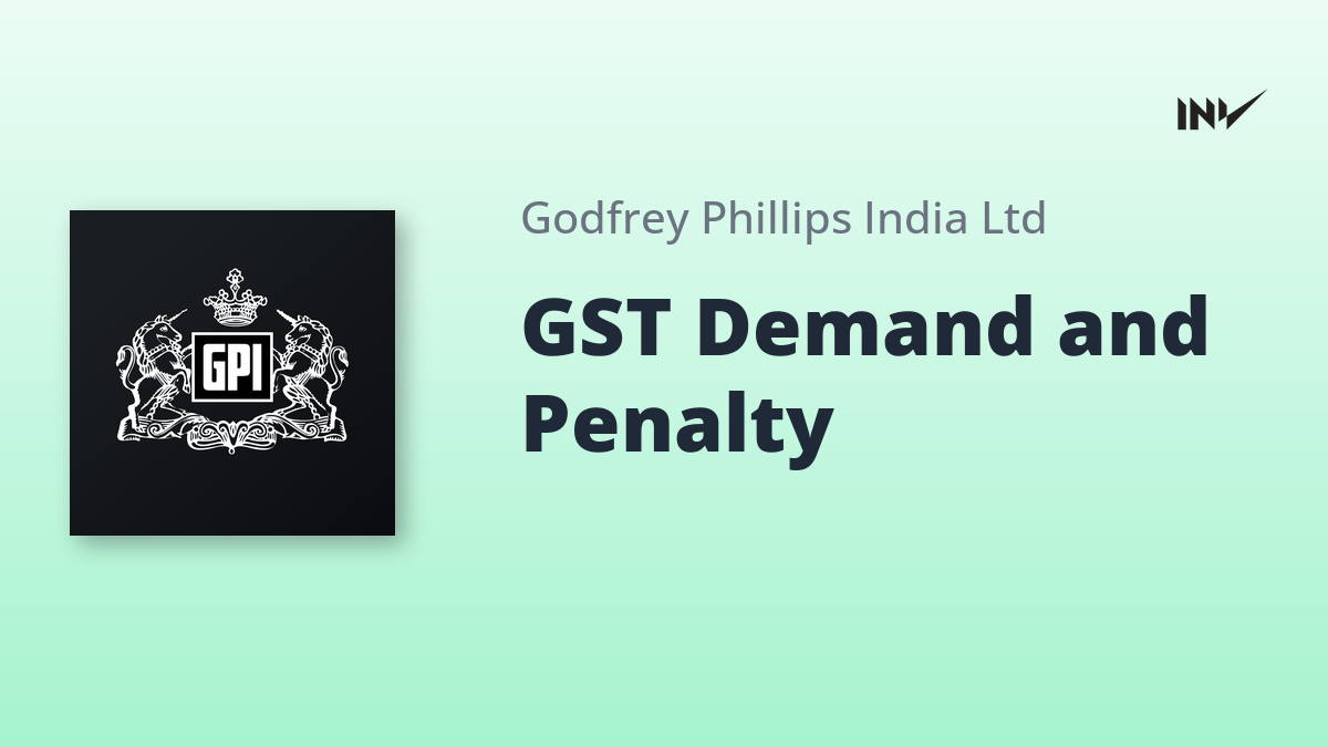 Company Update1 Min Read InvestyWise NewsonNovember 11, 2025 Godfrey Phillips India Tax Authority Levies GST Demand & Penalty Godfrey Phillips India has received an order from the tax authority demanding GST, along with interest and penalties. The total demand and…