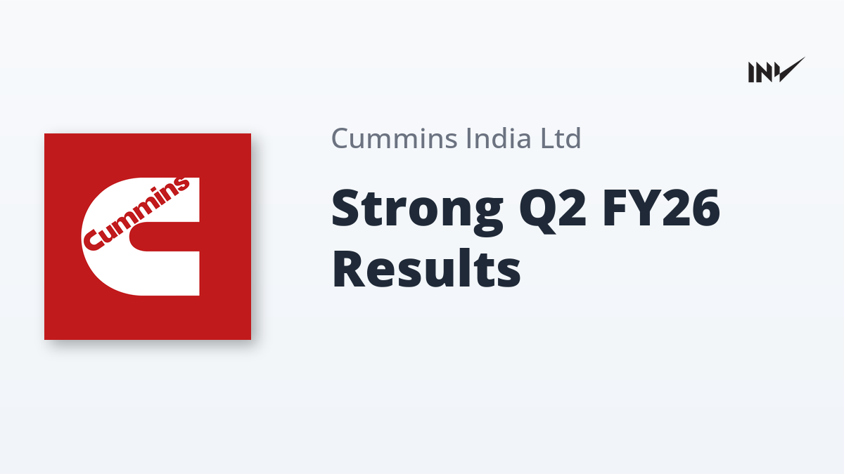 Company Update2 Min Read InvestyWise NewsonNovember 10, 2025 Cummins India Q2 FY26 Revenue Up 28% to ₹3,122 Crore Cummins India reported strong Q2 FY26 results, with revenue increasing by 28% year-over-year to ₹3,122 crore. Domestic sales grew by 28%,…