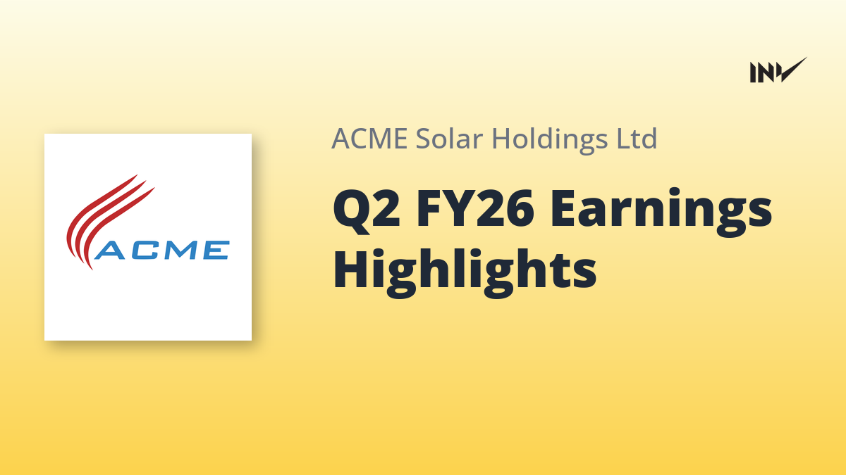 Company Update2 Min Read InvestyWise NewsonNovember 10, 2025 ACME Solar Holdings Earnings Call Transcript for Q2 FY26 ACME Solar Holdings reported strong Q2 FY26 results, with revenue up 104% year-on-year to INR601 crore and EBITDA increasing by 108% to INR534…