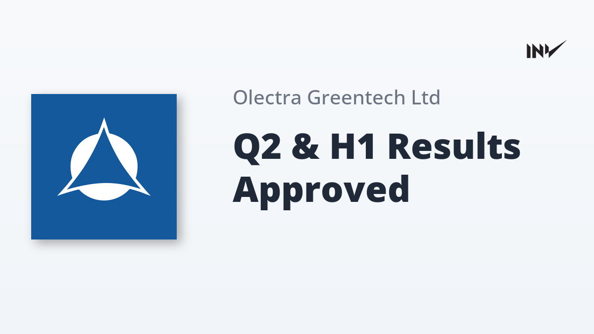 Company Results1 Min Read InvestyWise NewsonNovember 8, 2025 Olectra Greentech Board Approves Unaudited Financial Results for Q2 & H1 2026 Olectra Greentech’s Board has approved the unaudited financial results for the second quarter and half-year ended September 30, 2025.…