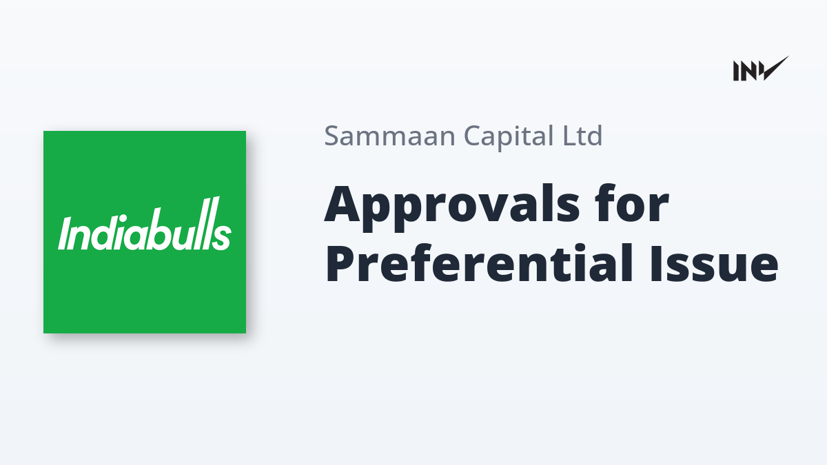 Company Update1 Min Read InvestyWise NewsonNovember 7, 2025 Sammaan Capital Approvals Received for Preferential Issue Sammaan Capital has received in-principle approvals from both the National Stock Exchange of India Limited and BSE Limited regarding its…