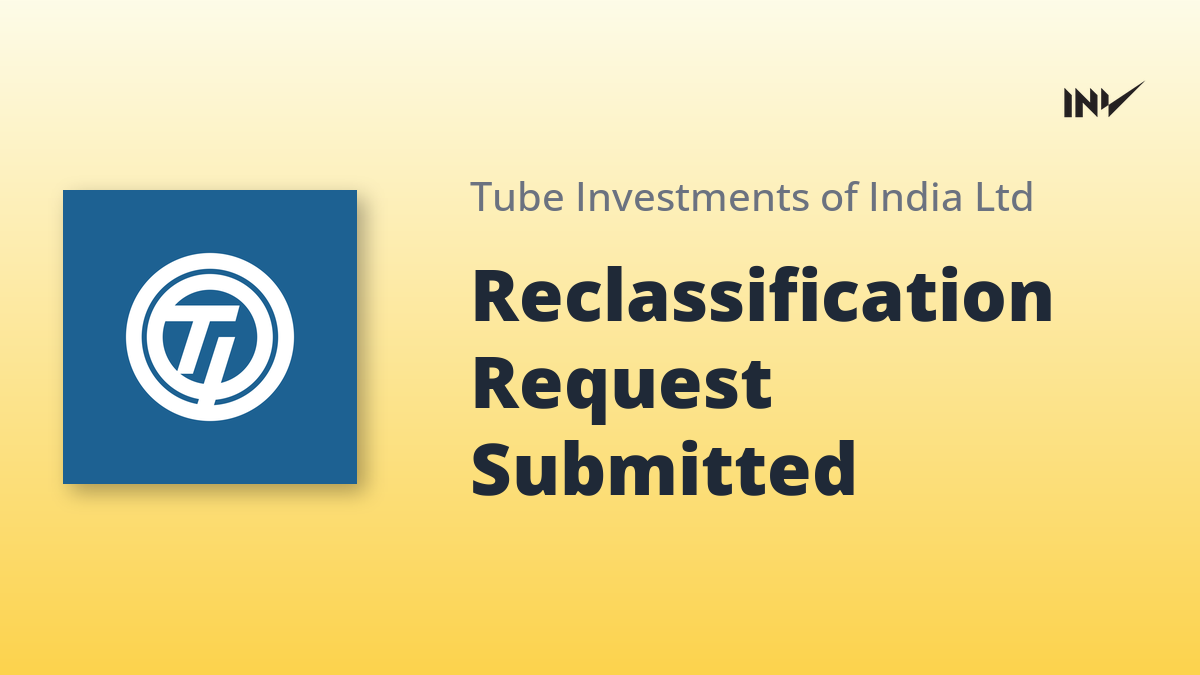 Company Update1 Min Read InvestyWise NewsonNovember 7, 2025 Tube Investments of India Yanmar Coromandel Reclassification Request Tube Investments of India has submitted applications to the National Stock Exchange of India and BSE Limited, seeking a…