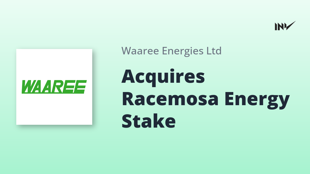 Company Update1 Min Read InvestyWise NewsonNovember 7, 2025 Waaree Energies Acquires 76% Stake in Racemosa Energy Waaree Energies has acquired a 76% stake in Racemosa Energy (India) Private Limited. The aggregate consideration for this acquisition is…