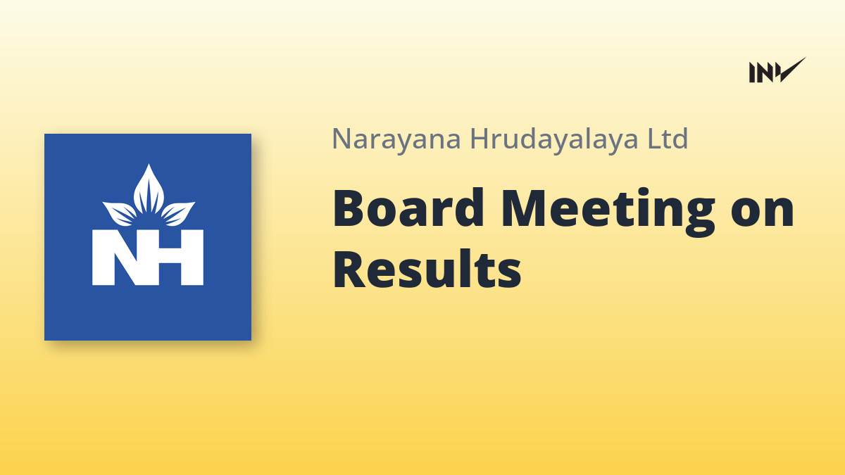 Board Meeting1 Min Read InvestyWise NewsonNovember 7, 2025 Narayana Hrudayalaya Board Meeting to Approve Quarterly Results A meeting of the Board of Directors of Narayana Hrudayalaya Limited is scheduled for November 14, 2025, to review and approve the unaudited…