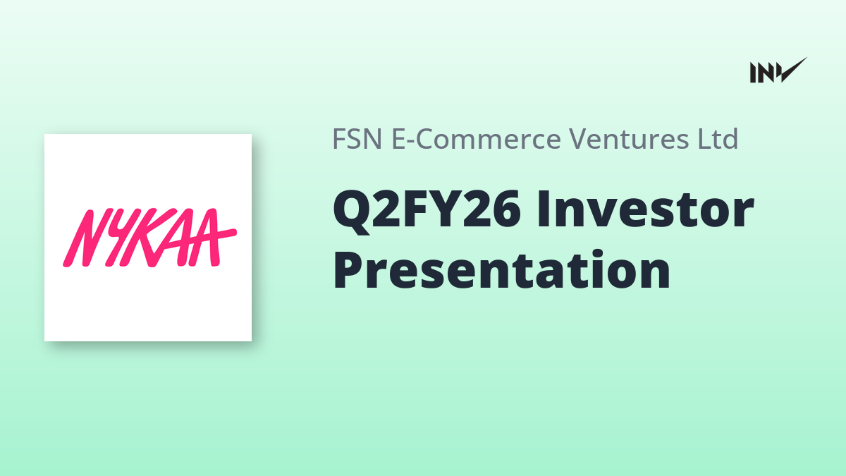 Company Update2 Min Read InvestyWise NewsonNovember 7, 2025 FSN E-Commerce Ventures Q2FY26 Results & Investor Presentation FSN E-Commerce Ventures (Nykaa) announced its investor presentation for Q2FY26, highlighting a 30% YoY increase in GMV to ₹4,744 Cr and a 25%…