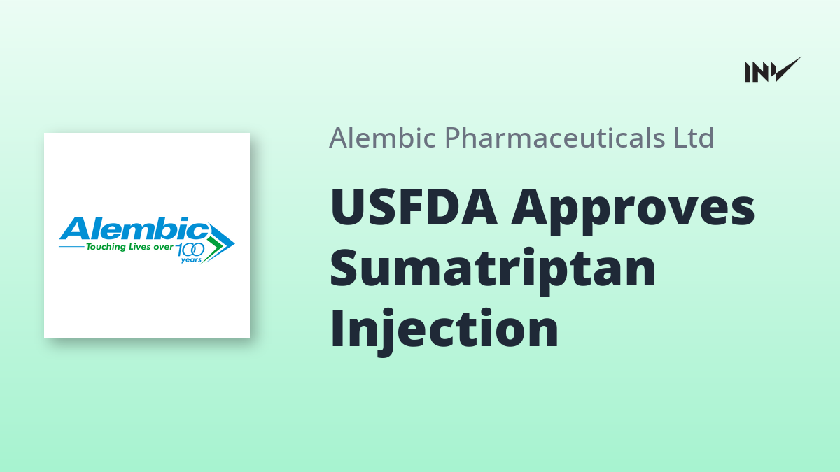 Company Update2 Min Read InvestyWise NewsonNovember 7, 2025 Alembic Pharmaceuticals Receives USFDA Final Approval for Sumatriptan Injection Alembic Pharmaceuticals has received USFDA final approval for Sumatriptan Injection USP, specifically the 4 mg/0.5 mL and 6 mg/0.5 mL…