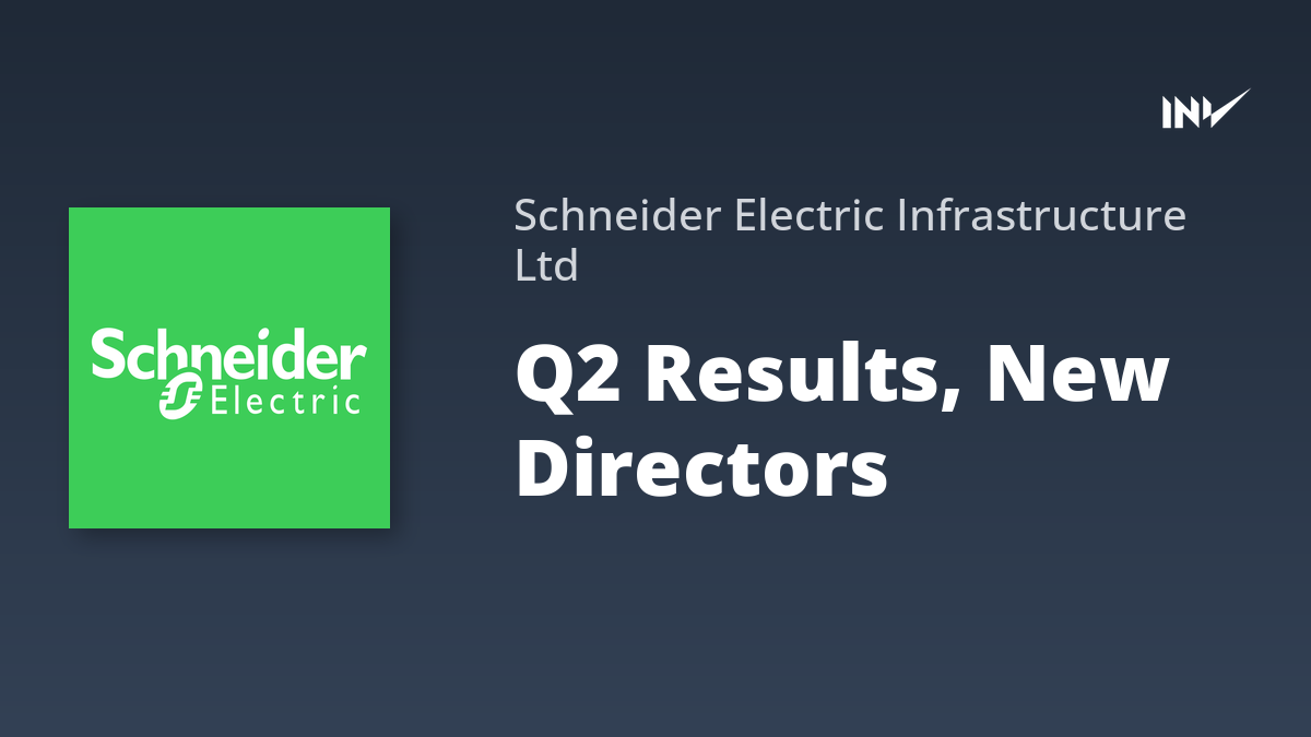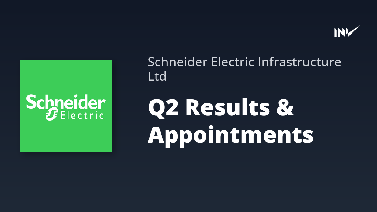 Company Results1 Min Read InvestyWise NewsonNovember 7, 2025 Schneider Electric Board Approves Q2 Results, Director Appointments Schneider Electric Infrastructure Limited’s board has approved the unaudited financial results for Q2 2025, ending September 30, 2025.…