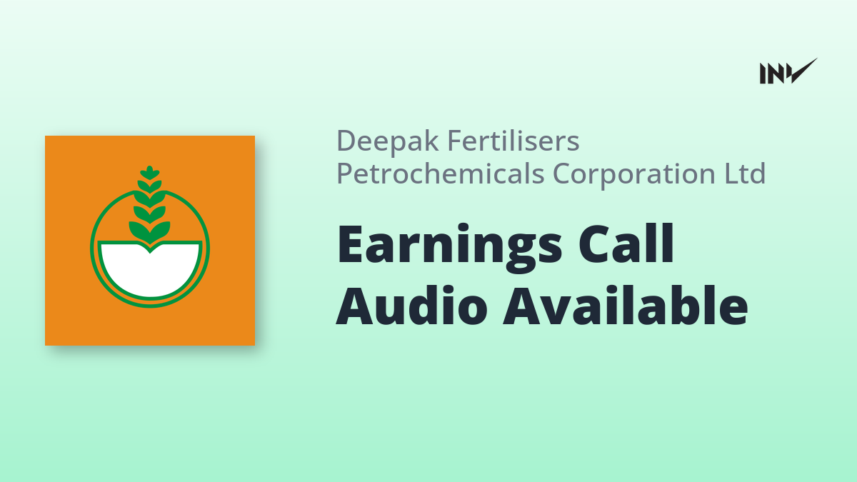 Company Update1 Min Read InvestyWise NewsonNovember 6, 2025 Deepak Fertilisers Audio Recording of Earnings Conference Call Deepak Fertilisers and Petrochemicals Corporation Limited has announced the availability of the audio recording of its earnings conference…